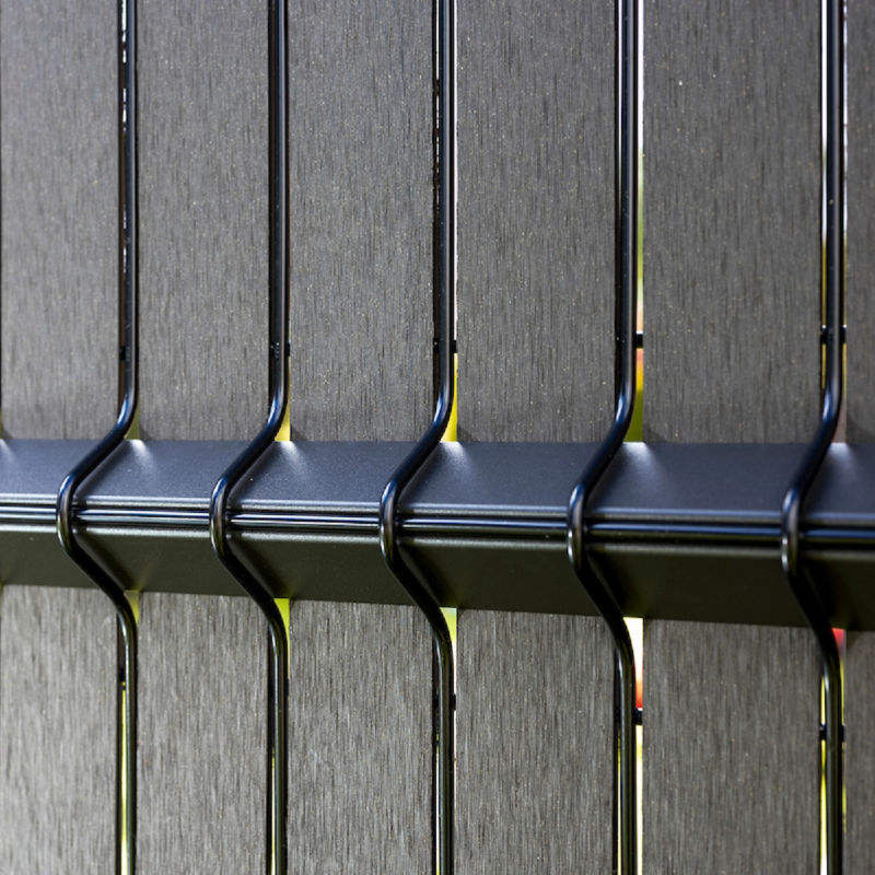 Triangles de renfort (24mm) et lisses hautes sont ainsi composés uniquement d’aluminium, pour une résistance optimale et un look ravageur. L’aluminium souligne l’élégance des lattes en composite et apporte une superbe touche finale à une solution d’occultation qui n’a plus rien à prouver !
