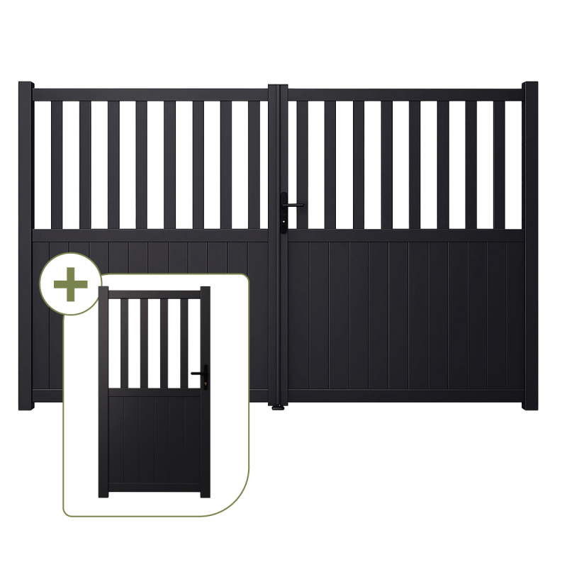 Ce pack portail et portillon représente une réponse idéale aux projets d’aménagement recherchant durabilité, style et équilibre architectural.