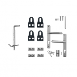 Le portail barreaudé Style est composé de 2 vantaux, 2 poteaux et l'ensemble de ses accessoires à savoir une serrure encastrée, canon européen (3 clés), 4 gonds avec fixations, poignée, gâche de réception, et 1 butée de sol.