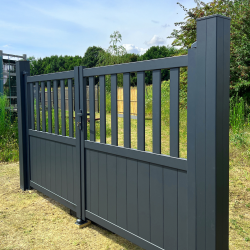 Le portail ALHAMBRA fait partie de la gamme BASTILLE, vous pouvez l'installer sur poteaux (non fournis) disponible en section de 100X100 ou 150X150 (hauteur 2m40).