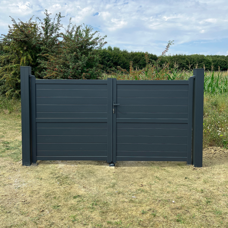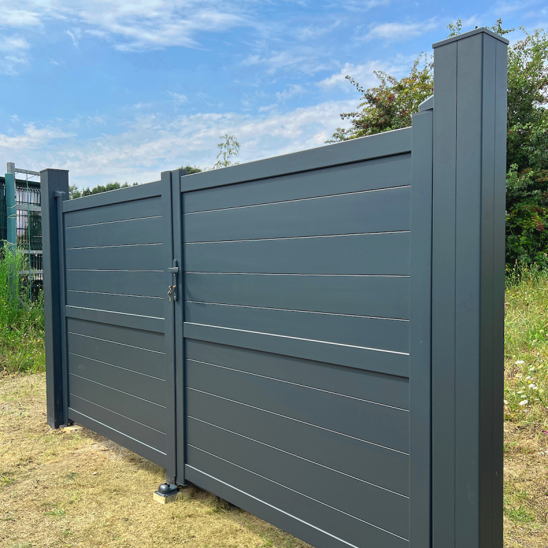 Le portail aluminium KOTOR vous offre une intimité complète avec son aspect plein grâce à ses lames aluminium.