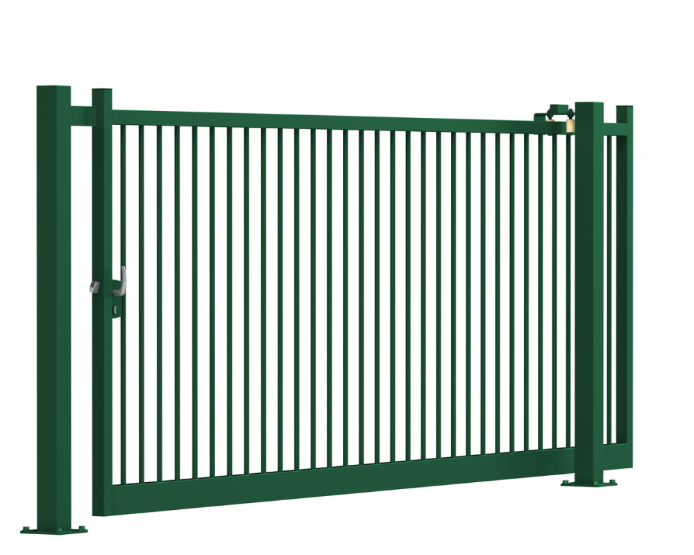 Avec son ouverture qui n'empiète pas sur le terrain, le Céleste est équipé de barreaux ronds de Ø22mm soudées ainsi que d'un poteau de guidage et un réception sur platine de 100 x 100 mm.