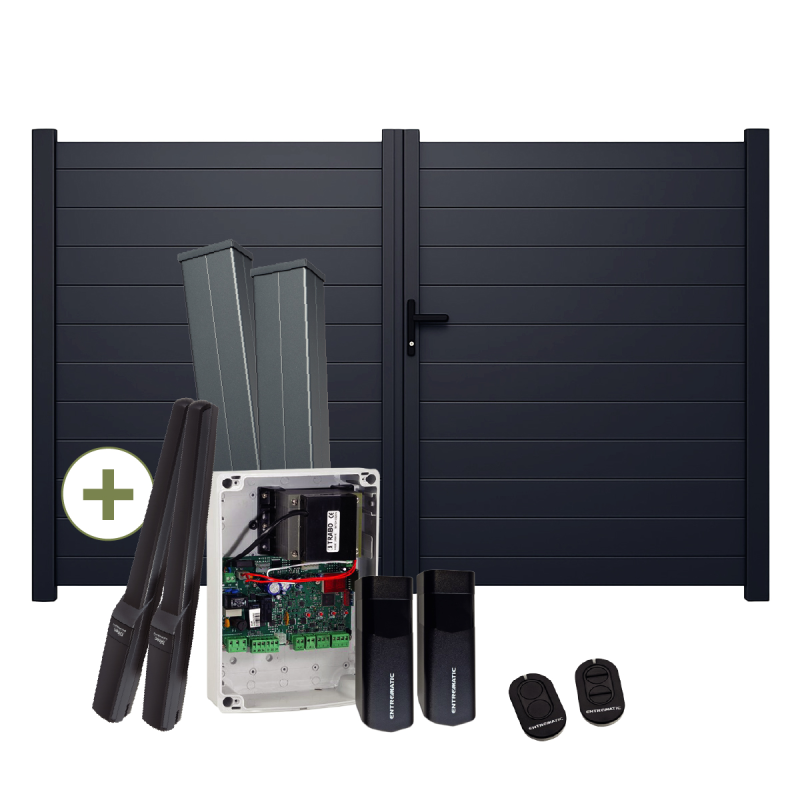 Le pack portail battant KOTOR motorisé sur poteaux est une solution complète pour équiper votre entrée d’un portail aluminium battant design et sécurisé grâce à sa motorisation à bras articulés.