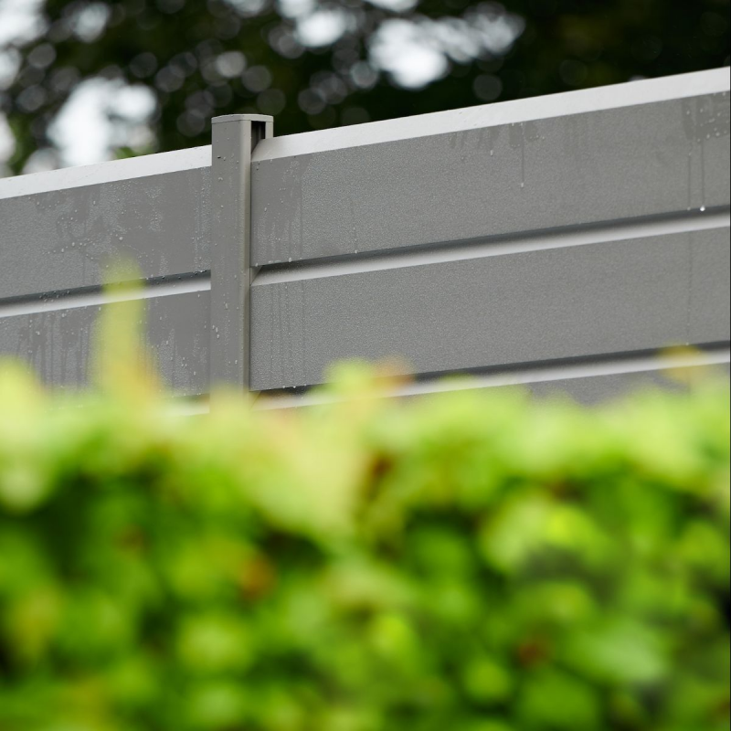 Le poteau en aluminium Elyo s'adapte également parfaitement avec les lames de clôture composite.